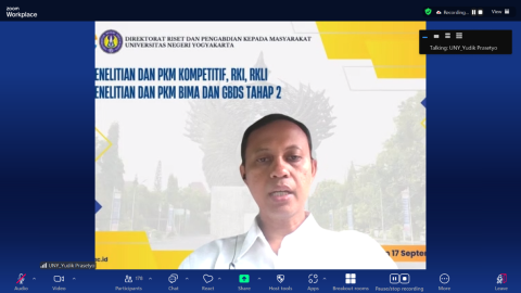 Yogyakarta, 17 September 2025- Direktorat Riset dan Pengabdian kepada Masyarakat Universitas Negeri Yogyakarta menyelenggarakan monitoring dan evaluasi (monev) penelitian dan PkM yang meliputi skim Kompetitif, RKI, RKLI, BIMA, dan GBDS Tahap 2. Kegiatan ini dilaksanakan pada hari Senin, 15 September 2025 dan Rabu, 17 September 2025 dan menjadi agenda penting untuk memastikan kualitas luaran dan penelitian sesuai dengan target yang telah ditetapkan dan memiliki dampak yang bermanfaat bagi masyarakat.