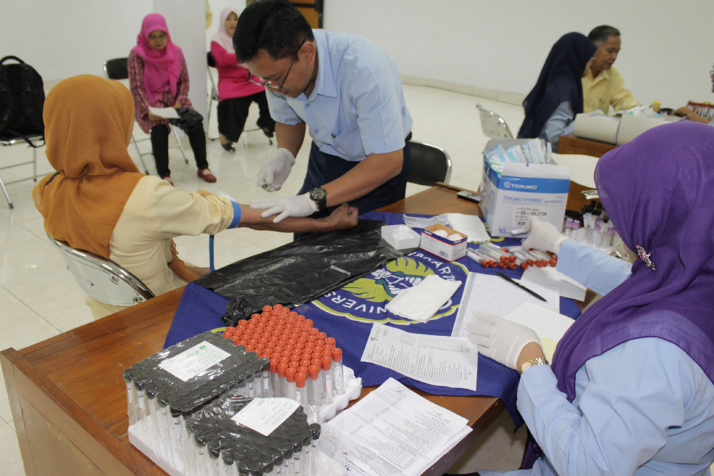 Sebanyak kurang lebih 200 karyawan dan dosen UNY memeriksakan kondisi kesehatannya. Karyawan dan dosen yang berusia lebih dari 50 tahun mendapatkan subsidi dan sebanyak 6 (enam) parameter check-up digratiskan. Pengambilan hasil check-up dapat dilaukukan pada Kamis, 10 April 2014, pukul 08.00—selesai di LPPM UNY, Karangmalang dengan disertai dengan penjelasan oleh dokter umum. (ags)