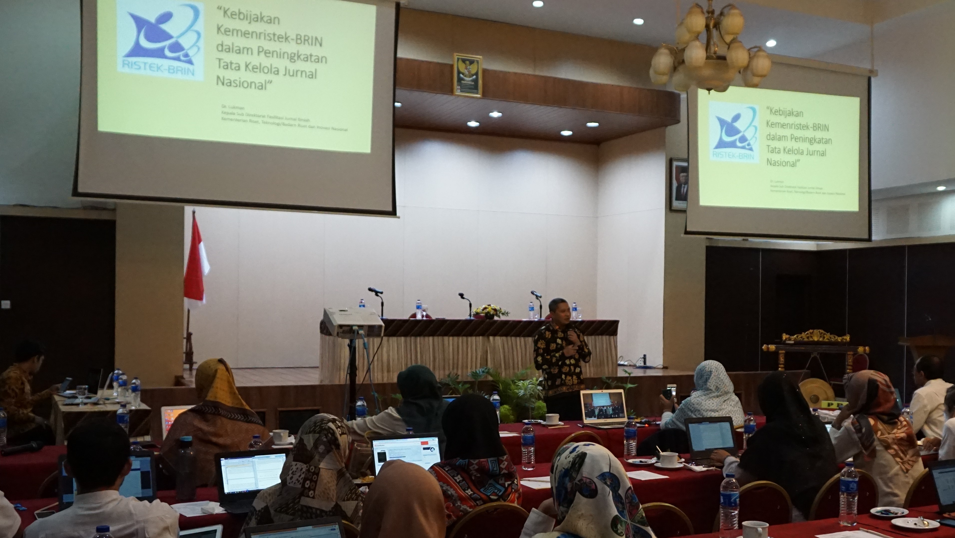 Dr. Lukman, Kepala Subdit Fasilitasi Jurnal Ilmiah Kemenristek/BRIN sebagai fasilitator workshop memberikan informasi bahwa Sub Sistem Peningkatan Kuantitas dan Kualitas Publikasi dan Jurnal di Indonesia antar lain: [1] E-Resources: Merupakan fasilitasi dalam penyediaan akses database E-Journal Internasional berbayar, sehingga dosen dan peneliti tidak memiliki lagi kendala dalam hal akses terhadap referensi Ilmiah yang digunakan sebagai bahan untuk publikasi ilmiah; [2] Rujukan (Rumah Jurnal Keilmuan): Merupakan fasilitasi infrastruktur (cloud server) beserta aplikasi e-Journal (berbasis Open Journal System) yang disediakan untuk pengelola jurnal yang memiliki kendala infrastruktur, aplikasi, dan SDM dalam menerbitkan jurnal secara elektronik; [3] Garuda (Garba Rujukan Digital): Merupakan fasilitasi pengindeks terhadap jurnal yang sudah terbit secara elektronik (e-Journal) sehingga terintegrasi dan mudah diakses oleh pengguna; [4] Arjuna (Akreditasi Jurnal Nasional): Merupakan sistem akreditasi jurnal yang dibuat untuk memfasilitasi proses akreditasi jurnal ilmiah berdasarkan Permenristekdikti No. 9 Tahun 2018 tentang akreditasi jurnal ilmiah, serta membuat peringkat akreditasi dari Peringkat 1 hingga Peringkat 6; [5] SINTA (Science and Technology Index): SINTA dibuat untuk memudahkan dalam melakukan pendataan dan pemetaan terhadap publikasi ilmiah yang dilakukan oleh akademisi dan peneliti di Indonesia; [6] Id Menulis: (dibaca IDE MENULIS) merupakan sistem pembelajaran elektronik yang dikelola Kemenristekdikti untuk meningkatkan diversifikasi penulis dan juga meningkatkan kualitas karya ilmiah melalui proses review dan bimbingan secara intensif dan termonitor; [7] RAMA Repository: merupakan repositori nasional laporan hasil penelitian baik berupa skripsi, tugas akhir, proyek mahasiswa (diploma), tesis (S2), disertasi(S3) ataupun laporan penelitian dosen / peneliti yang bukan merupakan publikasi di jurnal, konferensi maupun buku yang diintegrasikan dari Repositori Perguruan Tinggi dan Lembaga Penelitian di Indonesia; [8] ANJANI (Anjungan Integritas Akademik Indonesia): merupakan portal yang disiapkan oleh Kemenristek/BRIN sebagai sarana promosi dalam Pembinaan, Evaluasi dan Pengukuran, Klasifikasi dan Pelanggaran serta sanksi yang diberikan untuk pelanggar integritas Akademik.