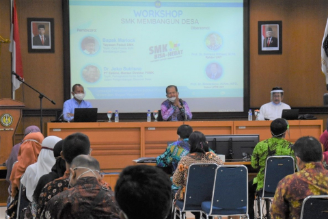 “Kegiatan workshop ini kita dorong untuk semua wilayah di Yogyakarta, sehingga kita lakukan luring dan daring. Smart work and happines, kita kerja cerdas dan menyenangkan ini semangat etos baru yang kita bangun dalam menjawab tantangan apakah alumni SMK bisa mandiri, bisa menciptakan peluang kerja dan bisa mengatasi berbagai permasalahan? Yang ditujukan dengan berbagai riset/penelitian ataupun isu-isu banyak alumni SMK yang belum mendapatkan pekerjaan. Ini tantangan kita. Pendidikan SMK perlu didorong lebih baik lagi dan lebih berkarya, aku cinta produk Indonesia,” demkian dikatakan Ketua LPPM UNY, Prof. Dr. Siswantoyo, M.Kes.,AIFO dalam sambutannya pada Workshop SMK Membangun Desa.Harapan ketua LPMP UNY, ”Kumpas tuntas, ambil semua ilmu yang disampaikan narasumber dan terapkan di sekolah bapak ibu semua.” Worshop ini terselenggarakan berkat kerjasama UNY dengan BPM Kab Gunungkidul, BPM Kab Kulon Progo, dan Dikpora Kab Gunungkidul, yang akan dilaksanakan dua sesi. Sesi pertama yang dilakukan saat ini Jum’at (21/8) di Aula Kampus UNY Wates. Sedangkan sesi kedua nantinya akan dilaksanakan di Aula Dikpora Kabupaten Gunungkidul. Mengapa dilaksanakan di dua tempat, karena kabupaten Gunungkidul dan Kulon Progo sama-sama memiliki kampus untuk program vokasi atau sarjana terapan.Rektor UNY, Prof. Dr. Sutrisna Wibawa, M.Pd. dalam sambutannya mengatakan meskipun dalam suasana cuti bersama, namun karena kita kerja positif, kerja keras untuk memikirkan pendidikan anak bangsa sekarang dan kedepan. Sutrisna mengatakan, “Workshop hari ini dilatar belakangi bahwa kita terlalu suntuk untuk memikirkan SMK dan industri, sementara desa belum terpikirkan padahal lulusan SMK tidak semuanya tertampung di industri, tetapi perlu diberikan ruang lain untuk menciptakan pekerjaan di desa-desa sehingga tidak perlu ke berbagai kota untuk hunting industri”.“Tidak berarti koordinasi dengan industri dikurangi tetapi harus diberi porsi untuk lulusan SMK itu bisa bekerja di desa,”lanjut Sutrisna.Dalam paparannya, Marlock dari Yayasan Peduli SMK, dengan tema Cara Praktis SMK Membangun Desa, mengatakan bahwa “SMK Membangun Desa adalah terobosan masa kini dan mendatang untuk lulusan SMK. Sehingga mampu mengatasi arus balik alumni SMK korban “perceraian massal” di perantauan, mampu mengatasi zero tunggu lulusan SMK langsung beraktivitas tanpa harus merantau mengejar UMR, Disamping itu mampu melahirkanSMK menjadi pusat industri desa meningkatkan pendapatan bruto ekonomi desa dan penggerak ekonomi.” Dengan demikian, lanjut Marlok, “Otomatis menjadi SMK center of excellence dan mandiri mampu menjadi profit center serta SMK berbasis industri.””Akhirnya rezeki/karir alumni SMK jangan dibatasi oleh satu jurusan di SMK,”pinta Marlock.Sebagai narasumber kedua, Dr. Joko Sutrisno dari PT Estima (Mantan Direktur PSMK) menyampaikan materi dengan tema Peningkatan Peran SMK dalam Pengembangan Ekonomi Desa. Joko mengatakan bahwa, “Teaching factory concept adalah suatu proses pembelajaran yang mengajarkan kepada peserta didik vokasi tentang segala proses yang ada di dalam suatu perusahaan (factory) berupa soft skill dan hard skill mulai dari pembuatan produk/jasa. Memasarkan produk, menetapkan jumlah pekerja, menata keuangan perusahaan, membaca potensi pasar,” dilanjutkan lagi bahwa,”kegiatan teaching factory bisa dilakukan di sekolah atau di lokasi mitra industri,”jelas Joko.Sedangkan peran SMK dalam pengembangan ekonomi desa menurut Joko adalah sebagai akselerator program usaha BUMDES dan sebagai pelaku usaha di pedesaan, (Sud).